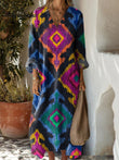 Women's Digital Printed Wide V-neck Dress